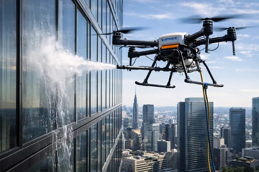 How does drone-assisted cleaning improve safety for high-rise projects?
